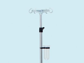Un portasueros telescópico que se introduce en el soporte del trapecio incorporador en el cabecero. Incorpora cuatro ganchos de metal y un recipiente para cánulas.