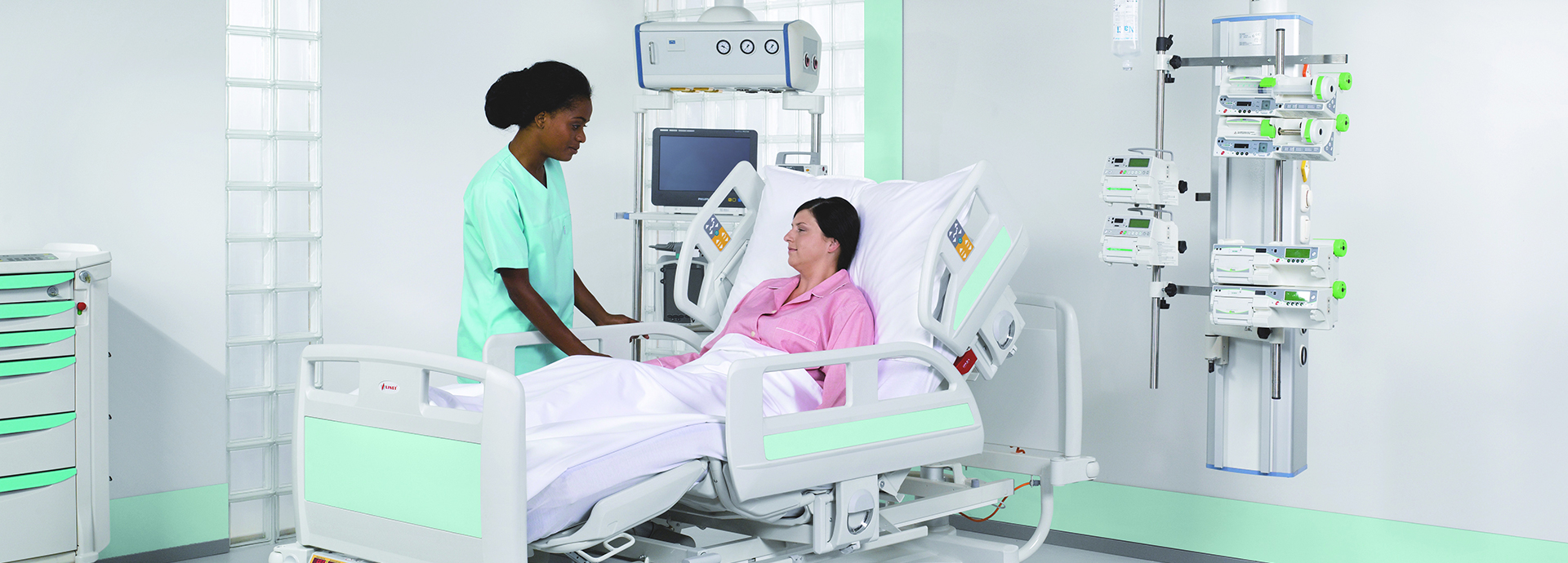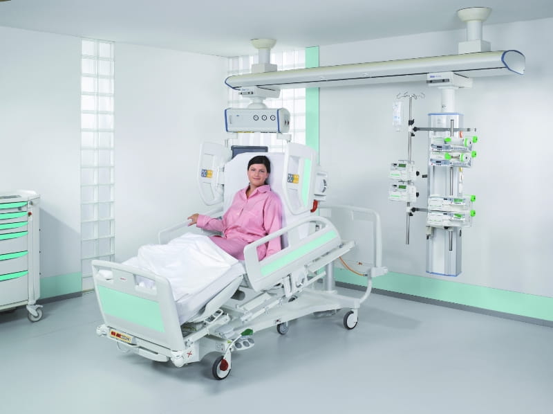 El diseño y funcionalidad de la cama Eleganza 3XC están hechos a la medida para cumplir con los altos estándares de cuidados intensivos. Esta moderna cama con construcción de columnas, ofrece un programa integrado que permite al personal médico y de enfermería tratar y cuidar a los pacientes críticos.