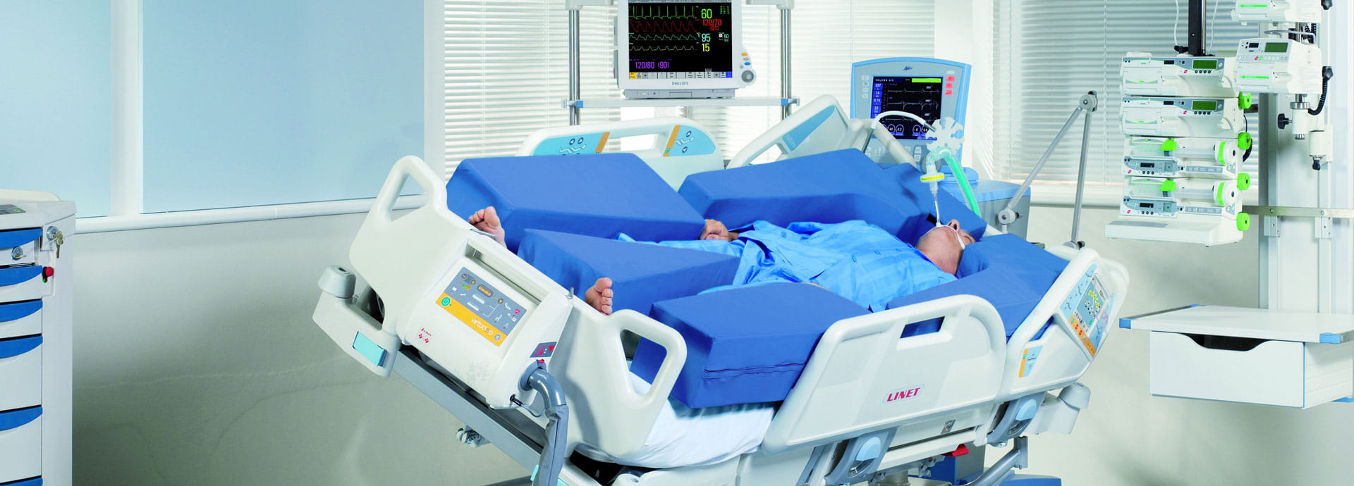 La Terapia Lateral Automática es un somier basado en la inclinación lateral que puede ser programado individualmente en ciclos para mejorar el drenaje de los pulmones, la oxigenación y/o la atelectasia.