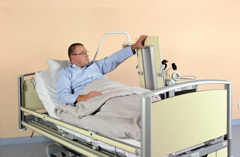 La Eleganza Mano es una mesilla de cabecera de auto-servicio, para pacientes con movilidad reducida.