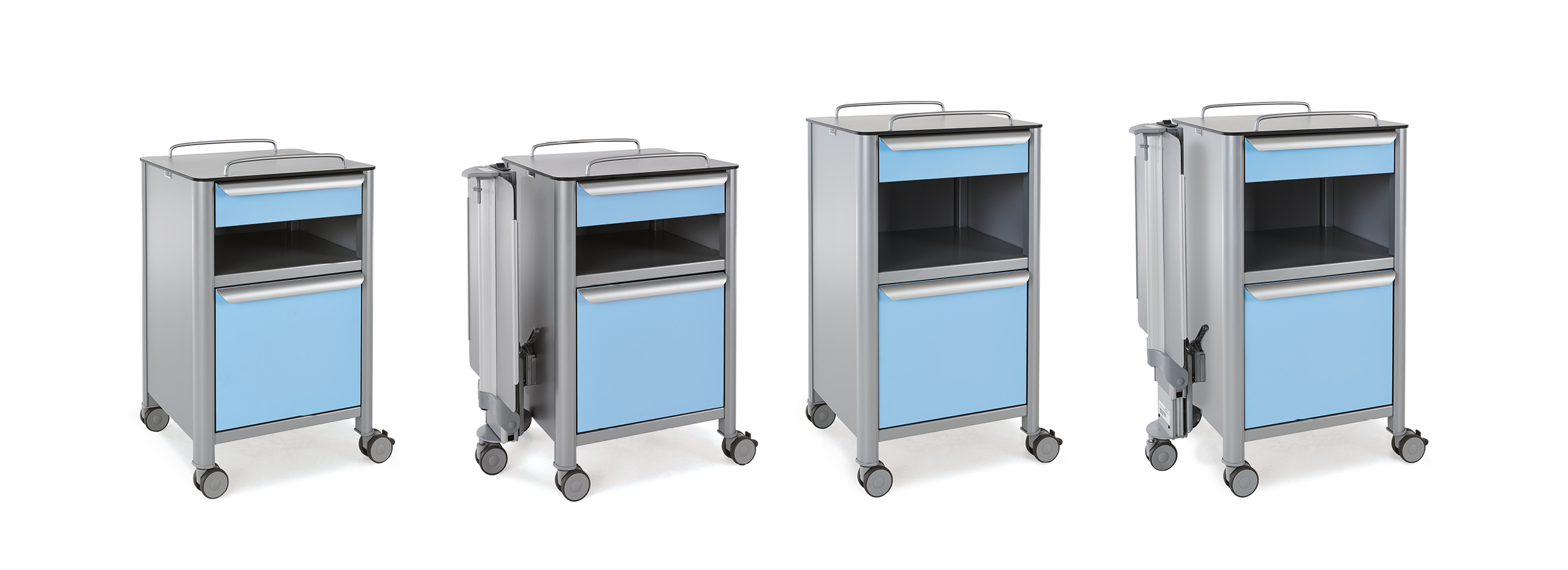 The eating table can be adapted individually to the patient's needs and the room with the help of the easy change of sides (left/right) that does not require tools.
