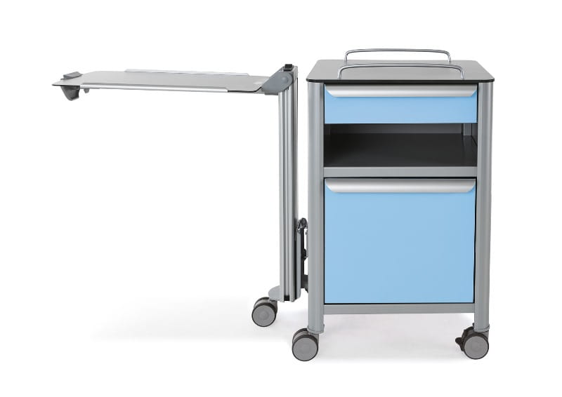 The compact construction and the separate 5th castor in the version with eating tray support fall prevention thanks to exceptional stability and steadiness.