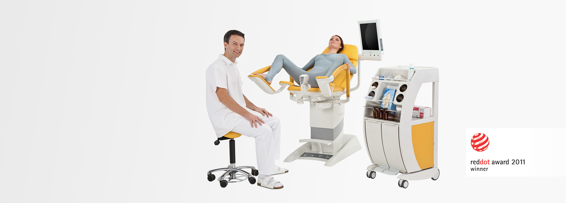 Silla ginecológica y otros equipos para su consultorio. GRACIE es un ambiente moderno, organizado y amigable para el médico y el paciente.