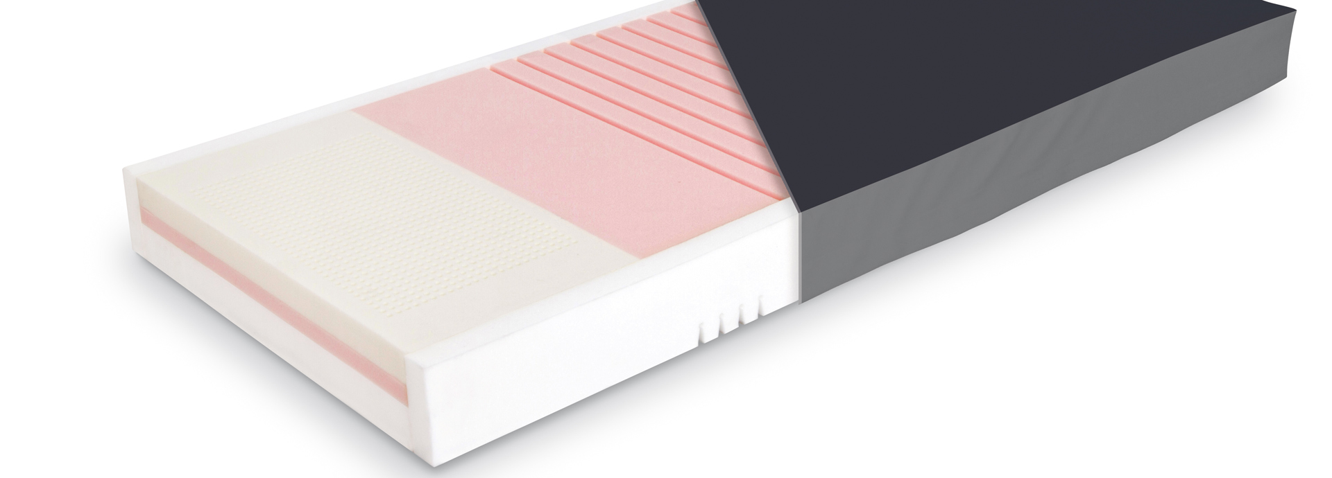 Three-layer core with viscoelastic foam in the area of the head and feet. Due to the viscoelastic foam, the mattress has excellent preventive properties against the development of pressure ulcers.