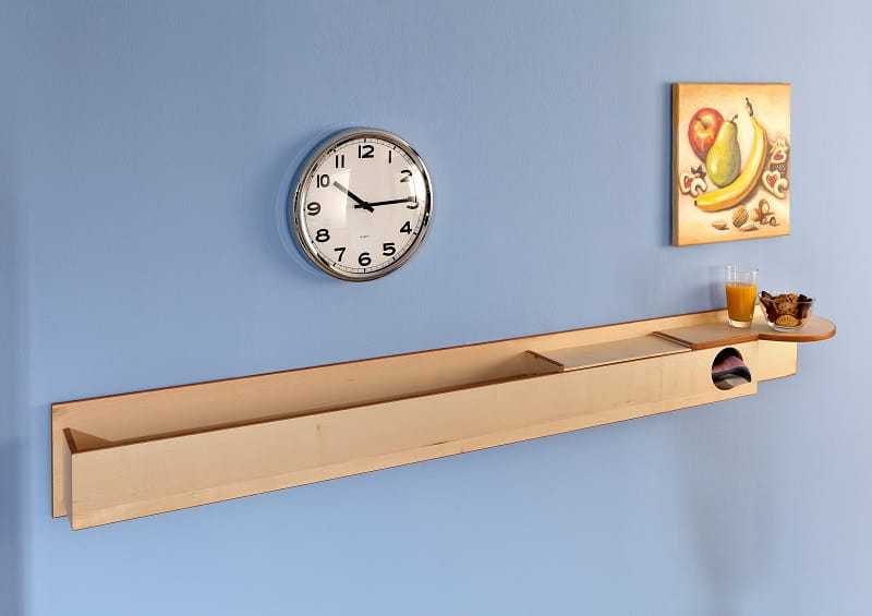 A food and sensory bar that offers the ability to place snacks on it to create an adventure for residents.