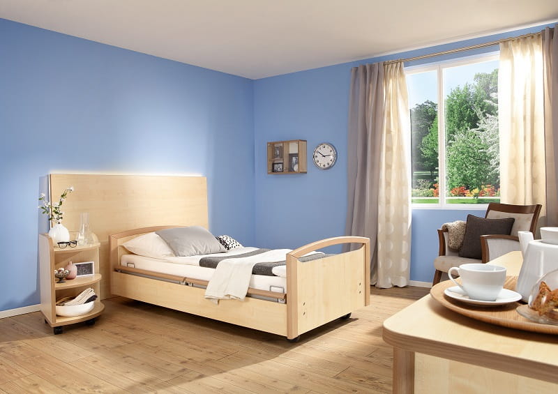 The low wall panel is mounted behind the nursing home bed and creates a cozy atmosphere.
