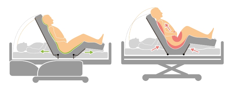 La posición de silla cardíaca puede ajustarse utilizando un único botón para maximizar la función respiratoria y minimizar el esfuerzo cardíaco.