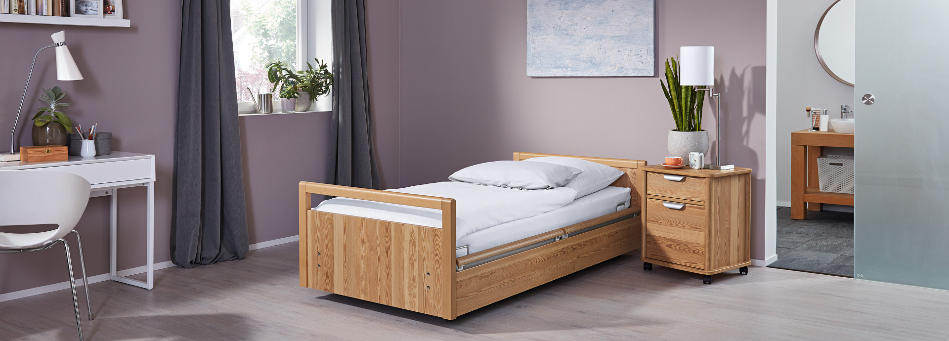 Con las camas bajas para residencias de ancianos de la gama sentida, wissner-bosserhoff ha logrado satisfacer de manera consecuente y sobre todo inflexible las demandas de la atención de enfermería contemporánea: La mayor seguridad posible combinada con un diseño hogareño.