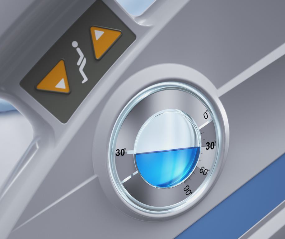 El atractivo diseño del indicador de ángulo muestra la inclinación de la plataforma de colchón con claridad y exactitud.