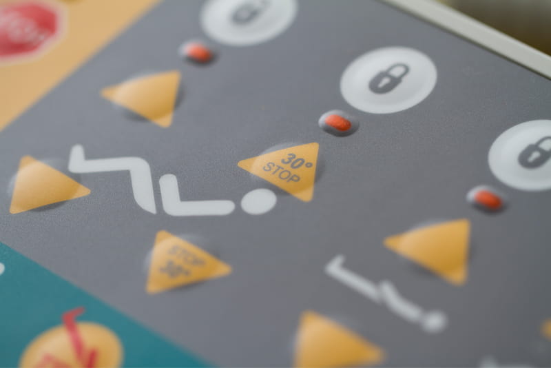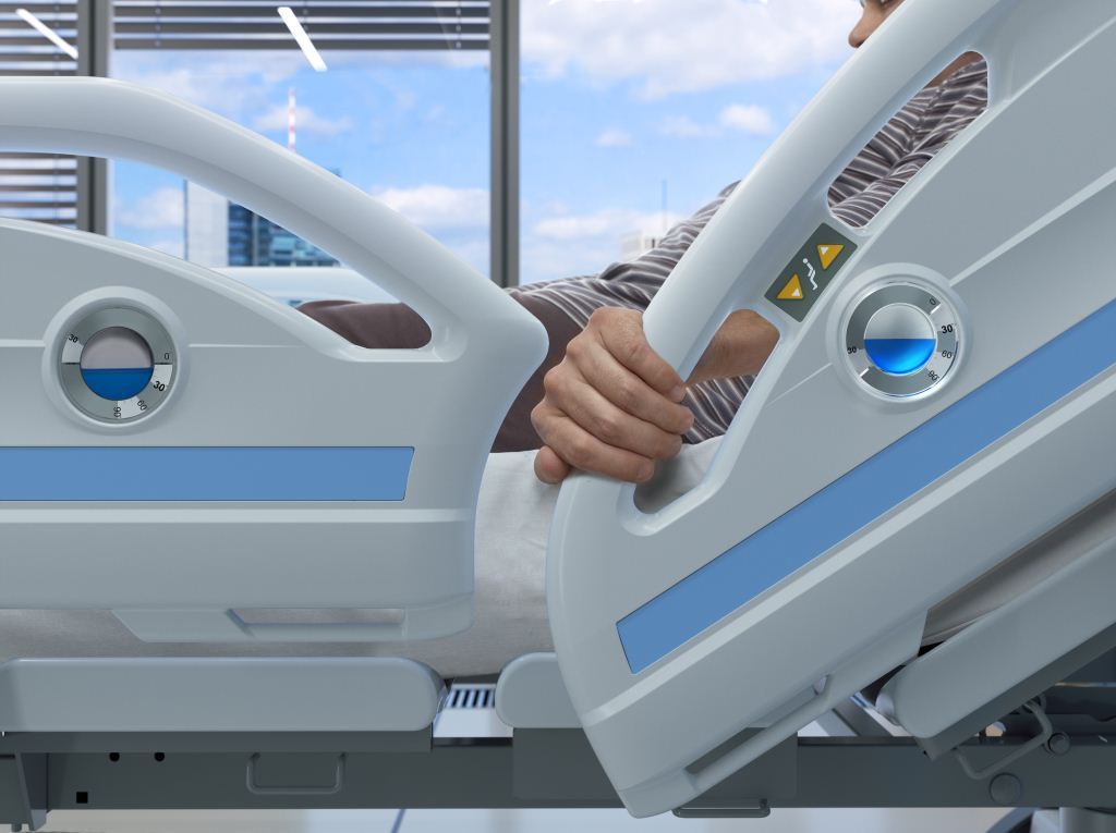 De manera única, el Mobi-Lift ha sido integrado en los barandales de la zona de cabeza de la Eleganza 2. Esto permite al paciente ajustar la altura de la plataforma del colchón de acuerdo a sus necesidades individuales sin necesidad de apoyarse en el agarre de los barandales.