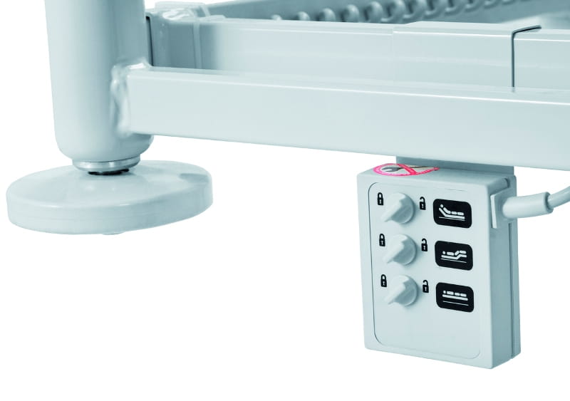 The length of the bed can be extended by up to 20 cm. The foot crossbar can be extended in length by 10 cm and another 10 cm extension is available at the head section.