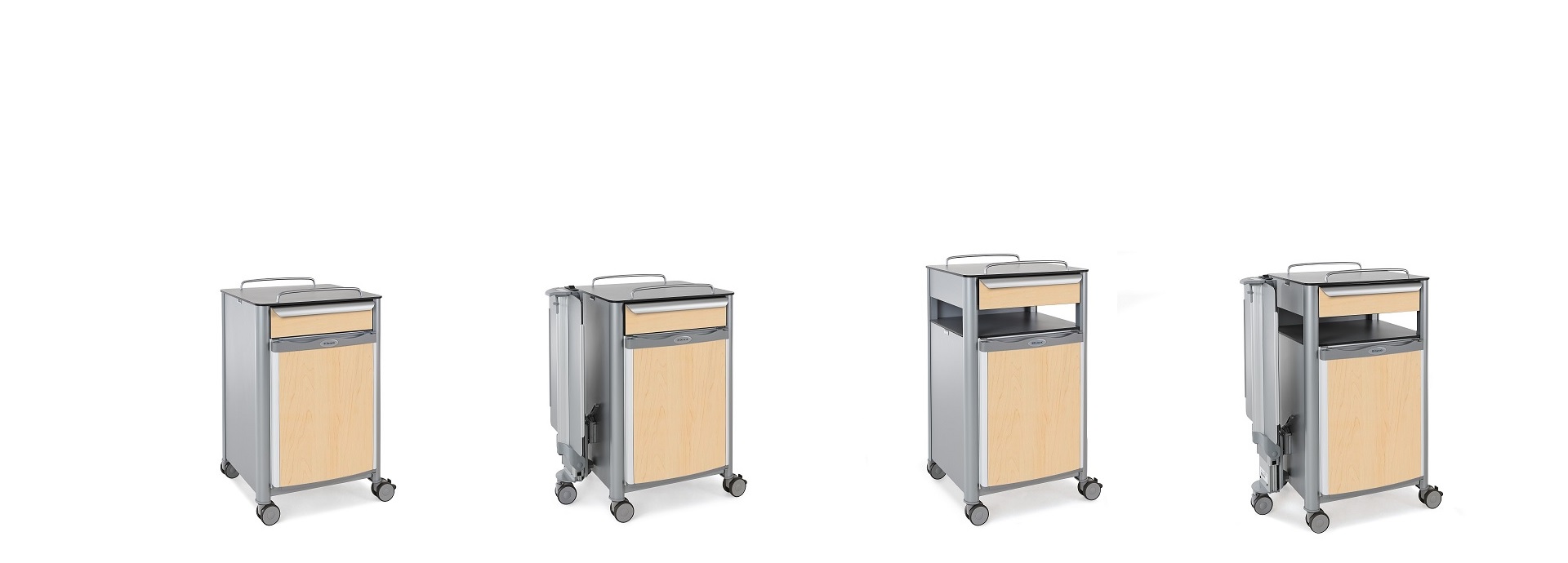 Higher product versions offer additional storage space. Robust drawers with integrated bottle holders help to keep things tidy.