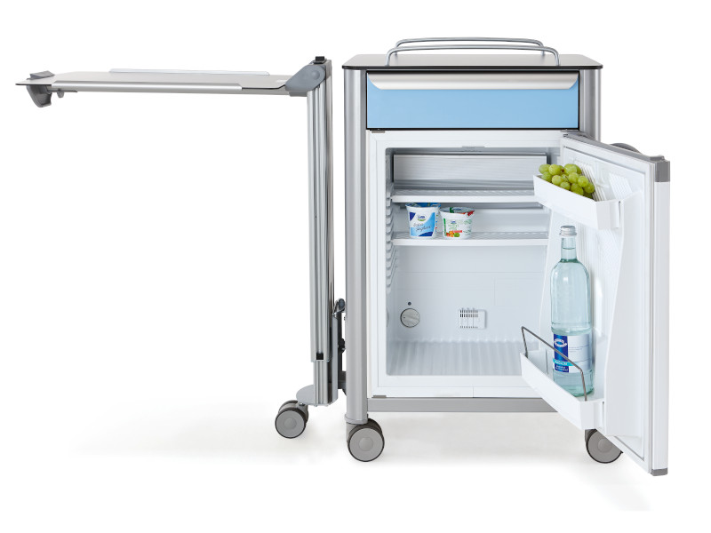The stylo bedside cabinet series combines a cozy furniture design with innovative functions and therefore enables the manufacturing of practice-oriented product versions. A refrigerator leaves nearly nothing else to be desired.