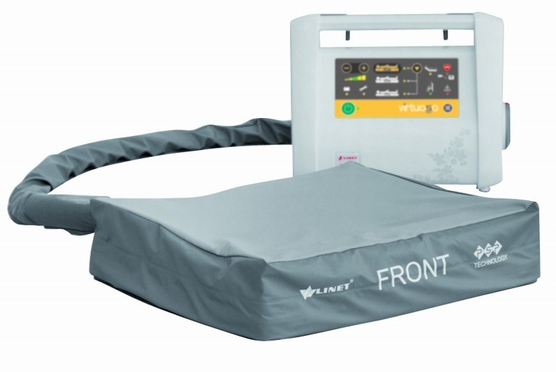 El Virtuoso está equipado con cuatro sensores de presión diferentes y un microprocesador que controla la presión precisa de las celdas. Para la comodidad del paciente es posible incrementar o disminuir la presión ajustando los niveles desde la membrana del panel.