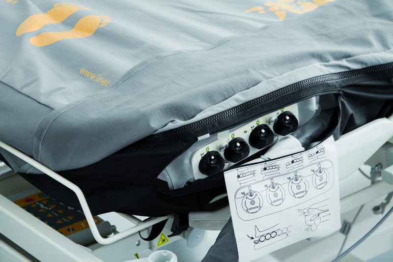 Con el colchón UCI Virtuoso, las celdas pueden ser deshinchadas en las zonas de la cabeza y talones para procedimientos como intubaciones o para alivio en areas sensibles específicas del cuerpo.
