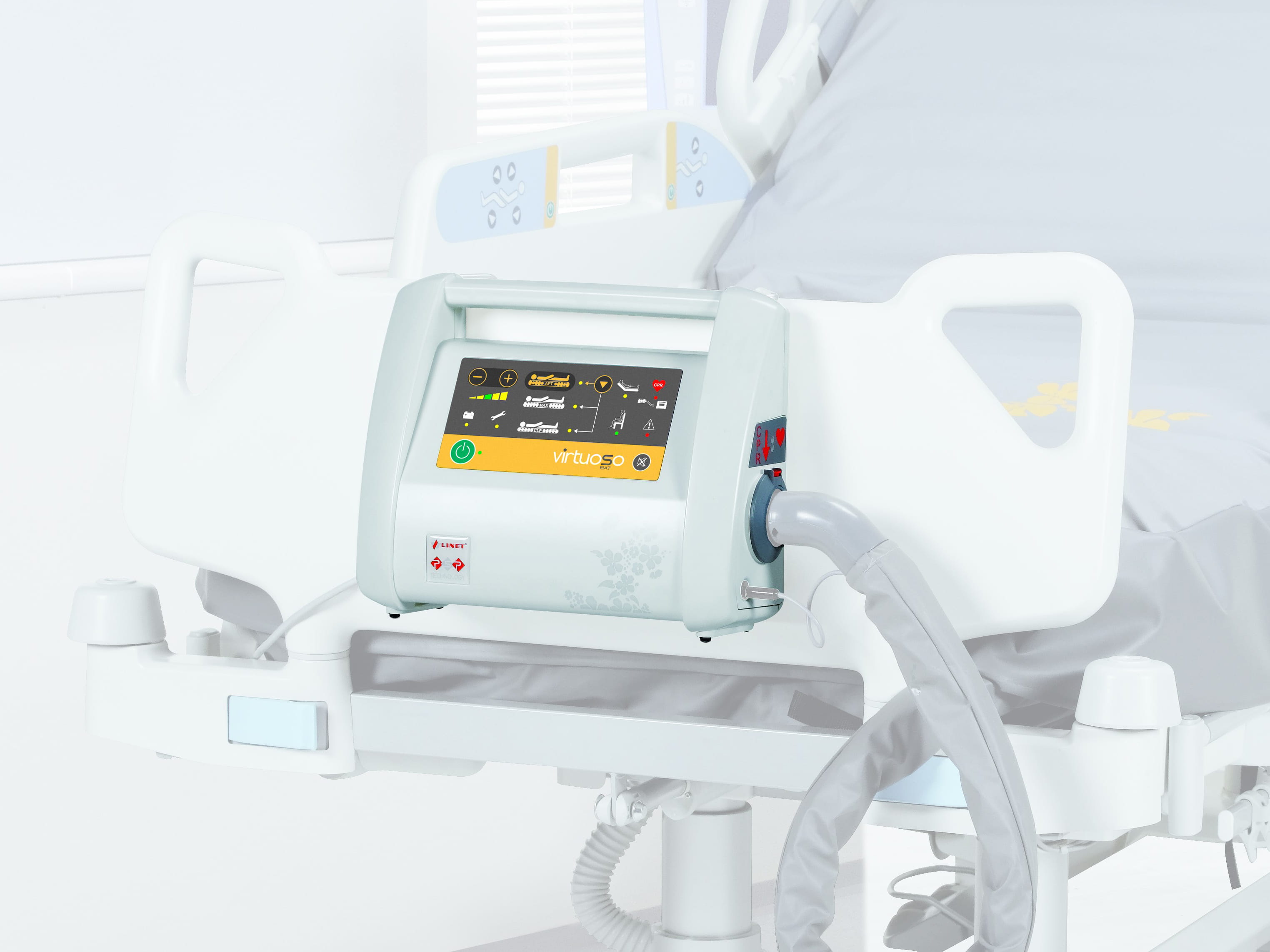La tecnología de tres celdas del colchón Virtuoso simula el movimiento natural del cuerpo, previniendo daños por presión. El colchón proporciona una extensa y completa eliminación de la presión. El Virtuoso es un sistema 24-horas de supresión de presión que proporciona un sistema de curación acelerada de las úlceras de decúbito, independientemente de la movilidad. Los parámetros ofrecidos en el sistema han sido cuidadosamente seleccionados sobre la base de una extensa investigación junto con numerosos estudios clínicos. El colchón Virtuoso tiene un ciclo de tres elementos, clínicamente probado, y que consiste en un trío de celdas esféricas que se allternan en intervalos de 7,5 minutos.
